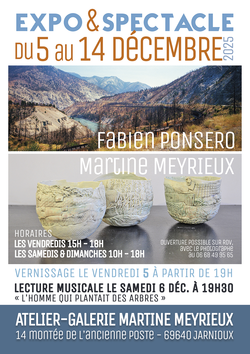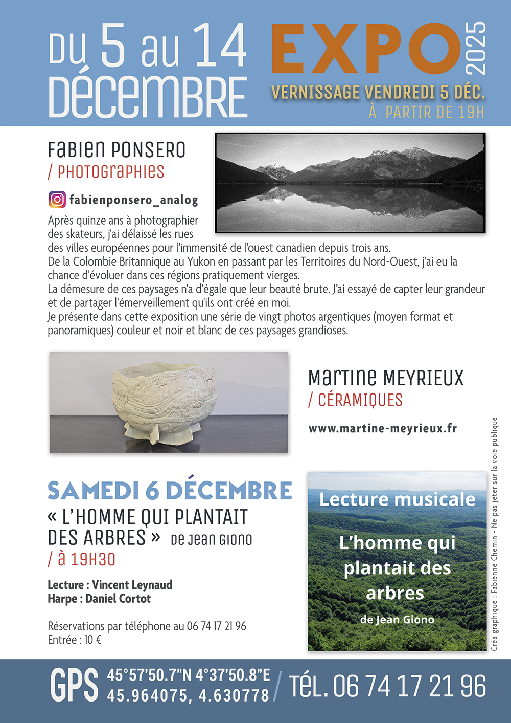 Le tout agrémenté par une « lecture musicale » le 6 décembre 2025 à 19h30, sur un texte de Jean GIONO, par Vincent LEYNAUD, accompagné à la harpe par Daniel CORTOT.
